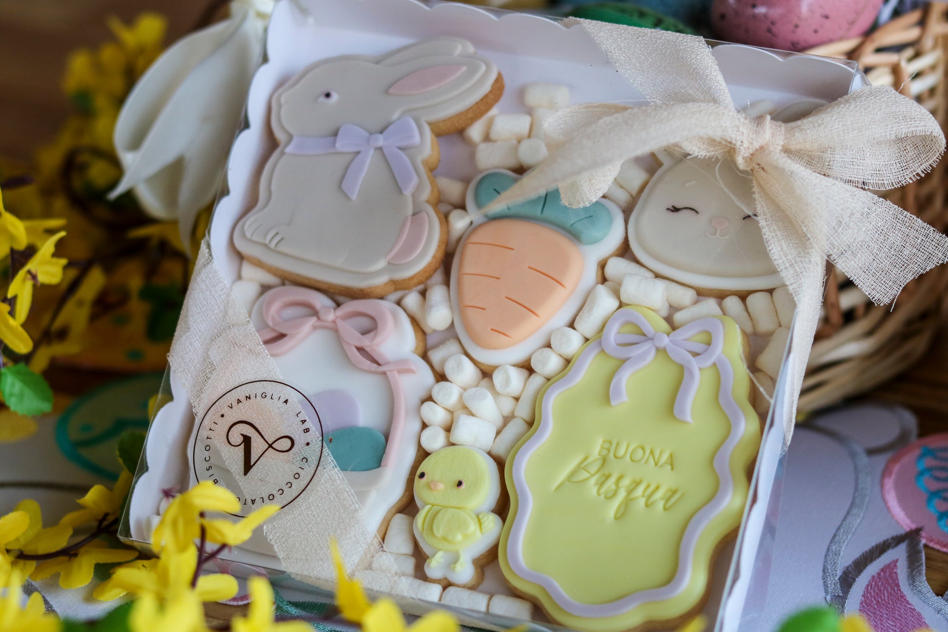 Fai della tua Pasqua un momento ancora più speciale con la nostra scatola di biscotti, il regalo perfetto per celebrare le festività con stile e dolcezza.