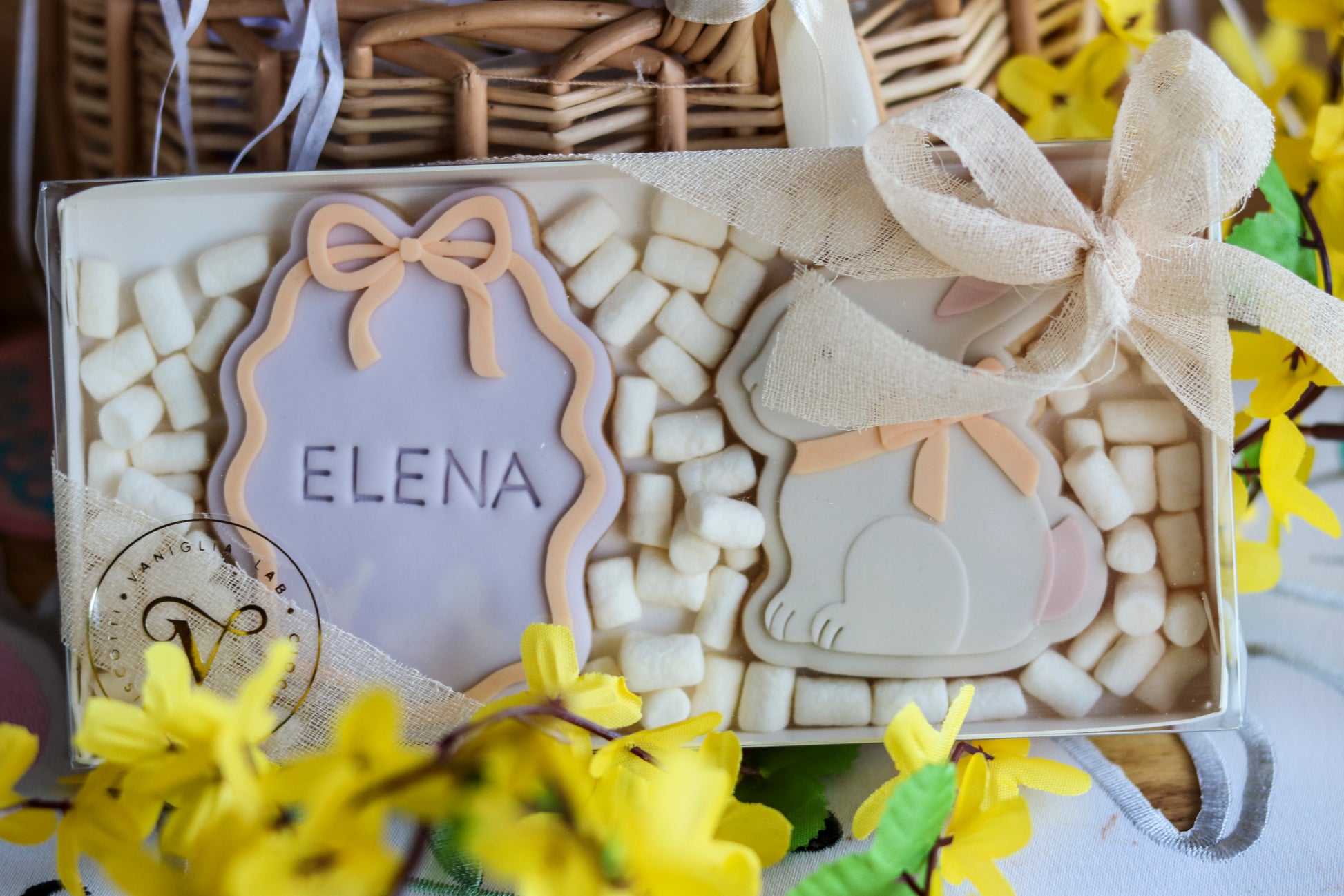 Fai della tua Pasqua un momento ancora più speciale con la nostra scatola di biscotti, il regalo perfetto per celebrare le festività con stile e dolcezza.