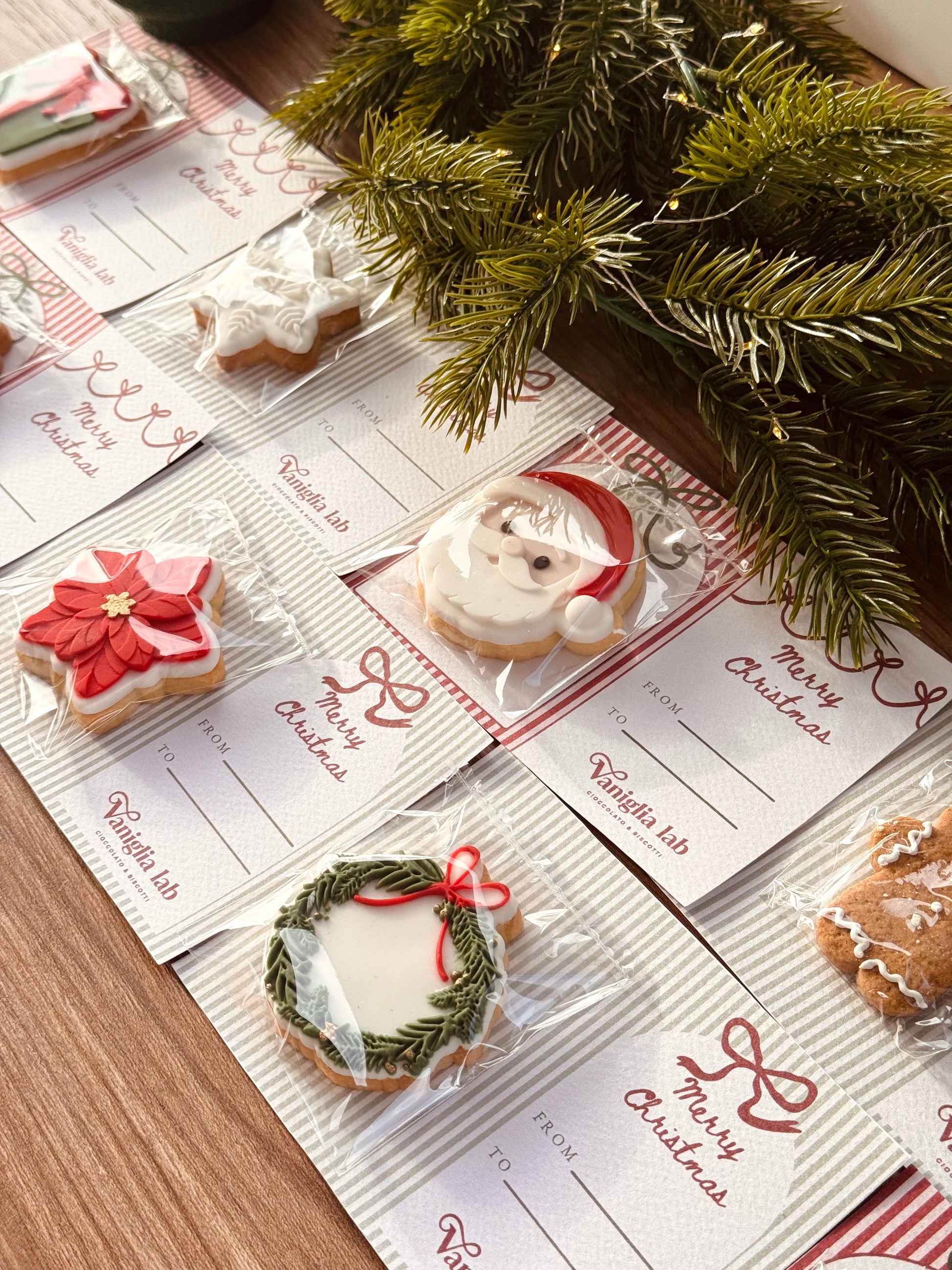 Rendi unico il tuo pensiero di Natale, con il nostro biscotto artigianale decorato a mano, confezionato singolarmente e acccompagnato da un’elegante card.