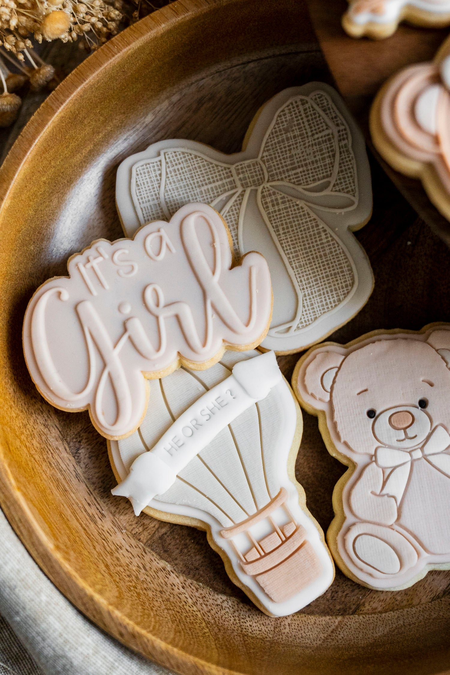 Un grazioso set di biscotti, per festeggiare l’attesa di una nuova vita e la rivelazione del sesso. Ottima idea regalo che verrà sicuramente apprezzata.